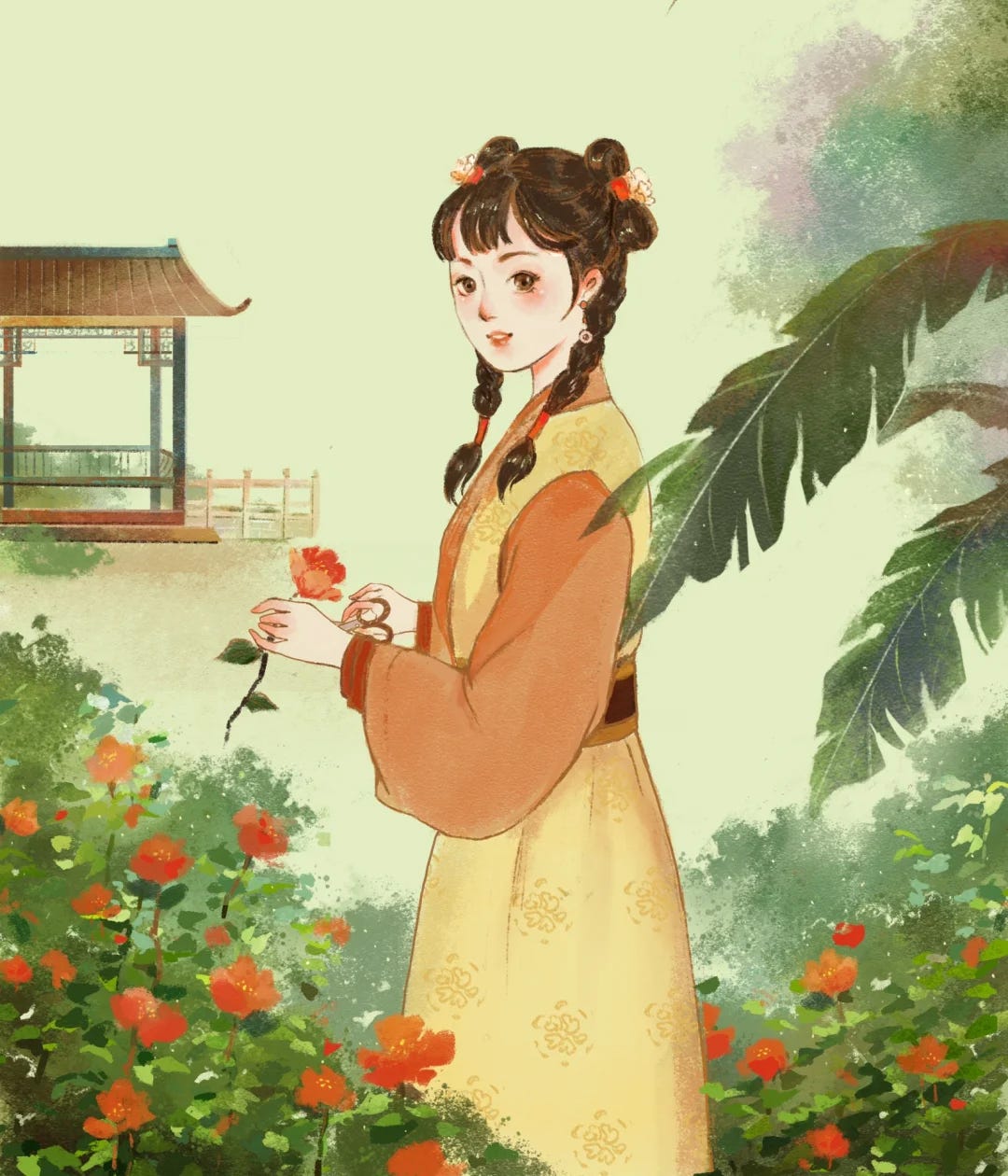 Image 2: an illustration of Jiao Xing 娇杏 (“Almondblossom) from《刘心武爷爷讲红楼梦》(“Grandpa Liu Xinwu Tells the Story of Dream of the Red Chamber”) by illustrator Zheng Qinyu 郑琹语 (1994- )